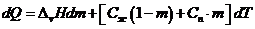 Пусть в гетерогенной системе при температуре Т находится 1 моль вещества, причем в равновесии находятся m молей пара и 1-m молей жидкой фазы. Пусть теплоемкость пара Сп, жидкости Сж, изменяем температуру от Т до T+dT, при этом испаряется масса жидкости dm, тогда затраты тепла dQ можно представить в виде соотношения: