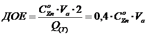 где Q(Т) – масса сухого сорбента, равная в условиях эксперимента 5 г; Vа, Vb – объемы фильтрата «до проскока» и до насыщения ионита ионами цинка; V – объем порции фильтрата, равный в условиях эксперимента 10 мл.