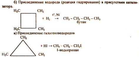 По химическому характеру малые циклы (циклопропан и циклобутан) склонны к реакциям присоединения,