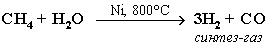 Высшие алканы (n>25) под действием кислорода воздуха в жидкой фазе в присутствии солей марганца превращаются в смесь карбоновых кислот со средней длиной цепи С12–С18, которые используются для получения моющих средств и поверхностно-активных веществ. Важное значение имеет реакция взаимодействия метана с водяным паром, в результате которой образуется смесь оксида углерода (II) с водородом – «синтез-газ»: